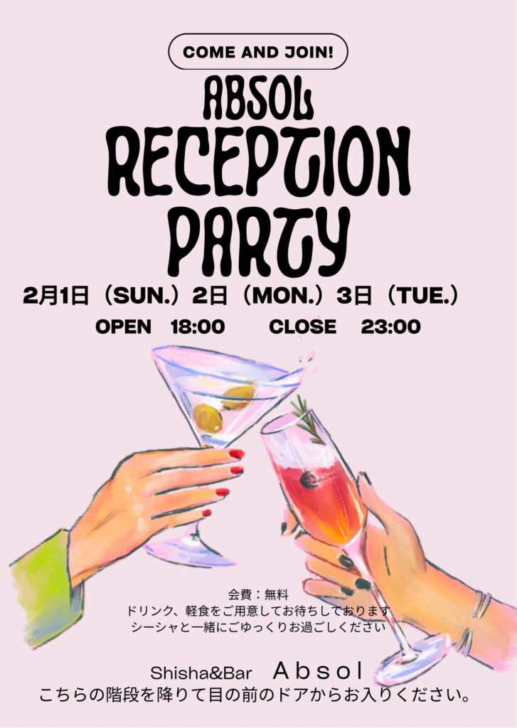 2月6日(金)のリニューアルオープンに先立ち、2月1日(日)より3日間、18時~23時にてレセプションパーティを開催いたします!